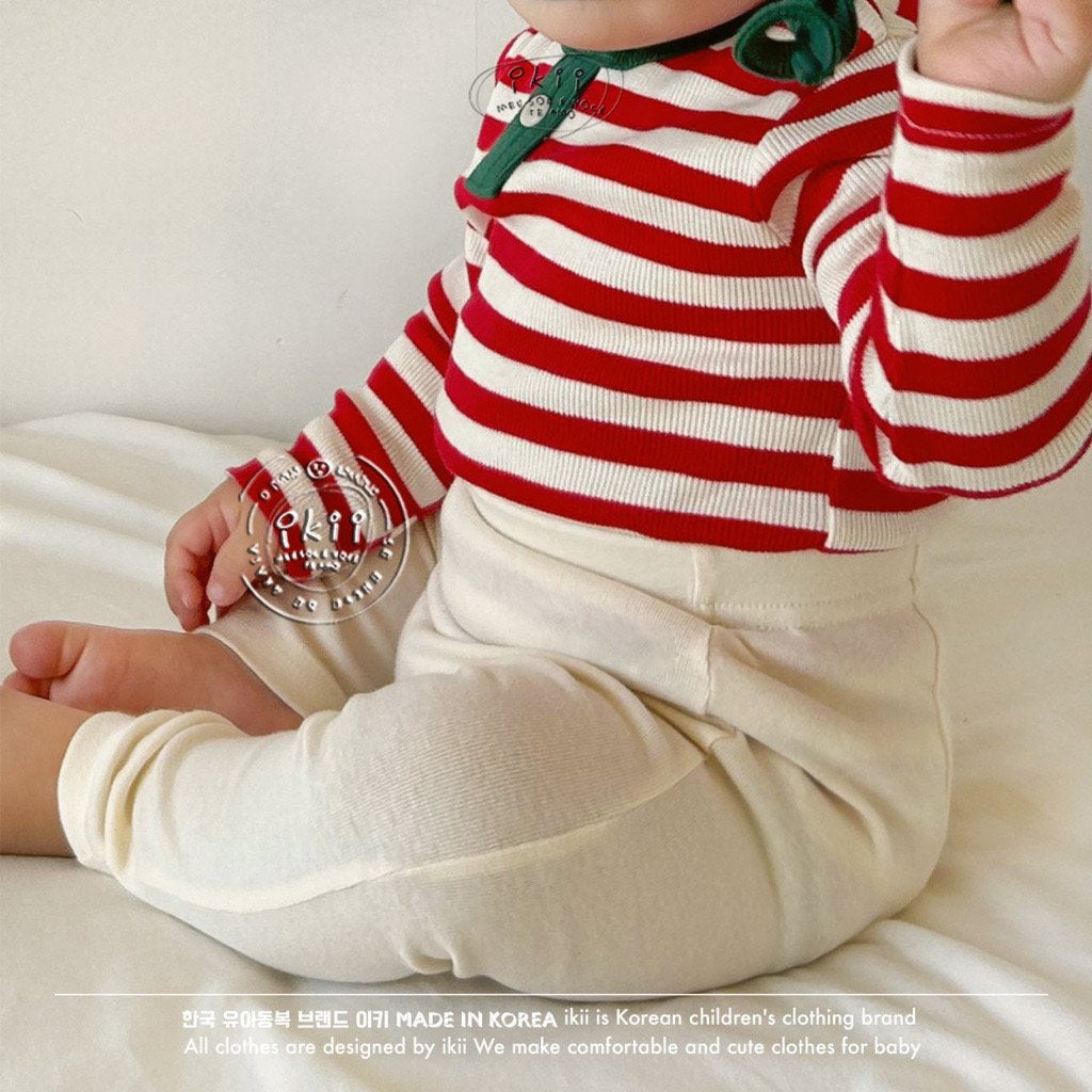 Add a cheerful touch to your baby’s first holiday season with the ikii Christmas Elf 2-piece set. This playful outfit includes a soft ribbed bonnet with a white pom pom tip and a matching striped bodysuit in festive green or red. Made in Korea from cotton, it feels gentle on delicate skin and stretches comfortably for everyday wear. The front snap buttons make changing easy, while the snug fit keeps baby warm and ready for cozy Christmas photos.