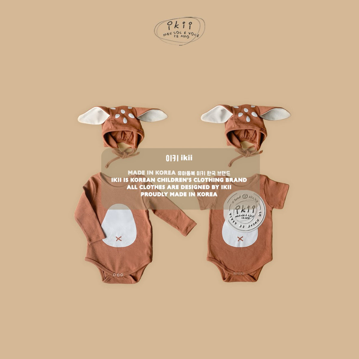The ikii Bambi Bodysuit 2-Piece Set brings a playful woodland charm to your baby’s everyday look. Each set includes a cotton bodysuit and a matching Bambi bonnet with soft ears, thoughtfully designed for both comfort and cuteness.