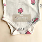 Made from 100% cotton, the bodysuit feels gentle, breathable, and cozy on delicate skin. It features snap closures at the bottom for easy diaper changes and a comfortable stretch fit that allows your baby to move freely. The bonnet adds a delightful finishing touch with its pink strawberry design and soft green leaf detail, making it perfect for photos, playtime, or special occasions.